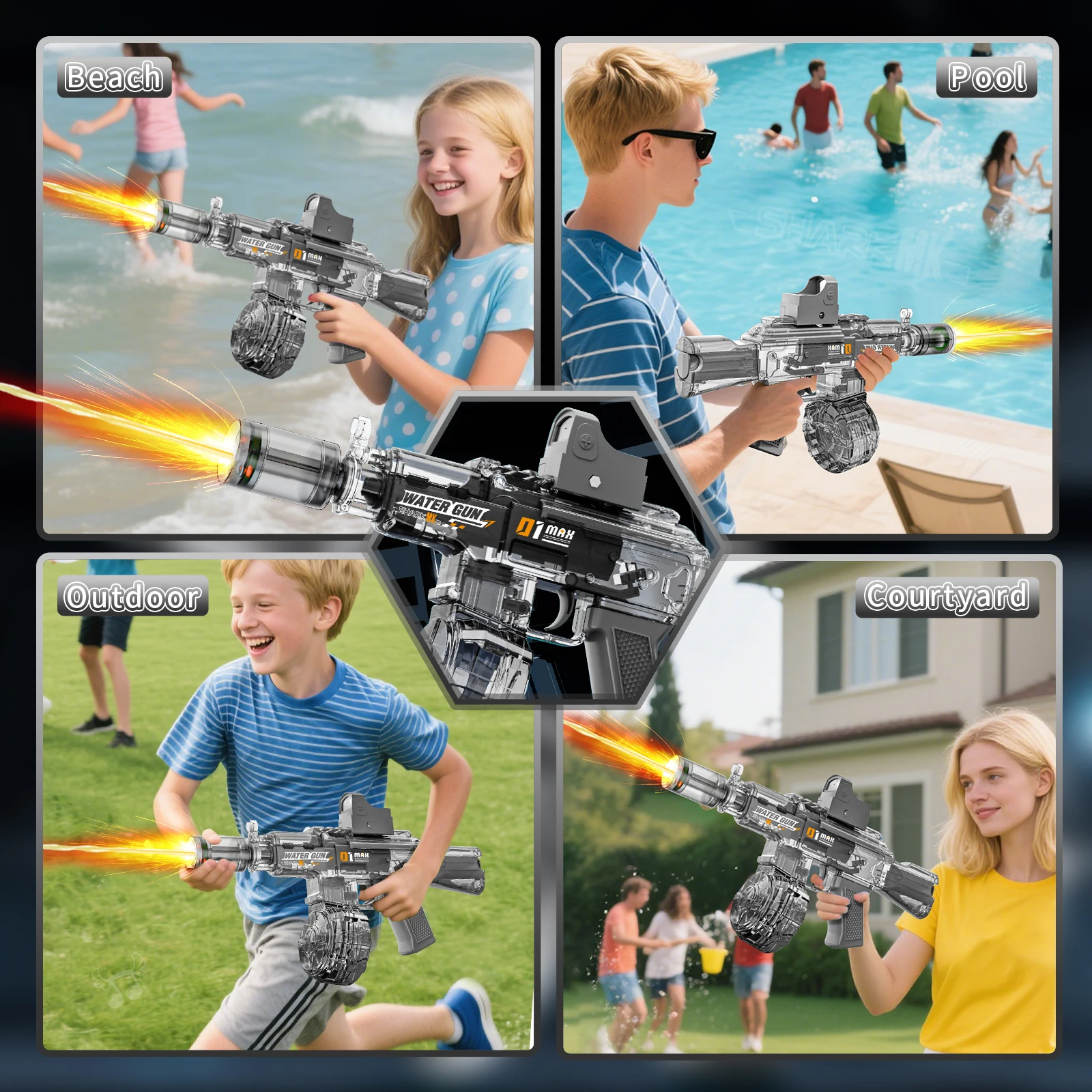 2025 Kids Hot Selling Electric Spray & Water Gun Simulates Sound Light Gun Toys Outdoor Activities Spray Vibration Gun Toys